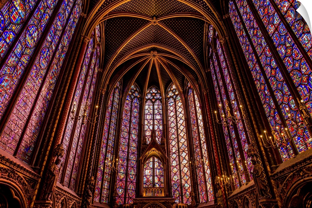 <p>Beautiful stained glass windows at Sainte-Chapelle Cathedral, Paris, France.</p>