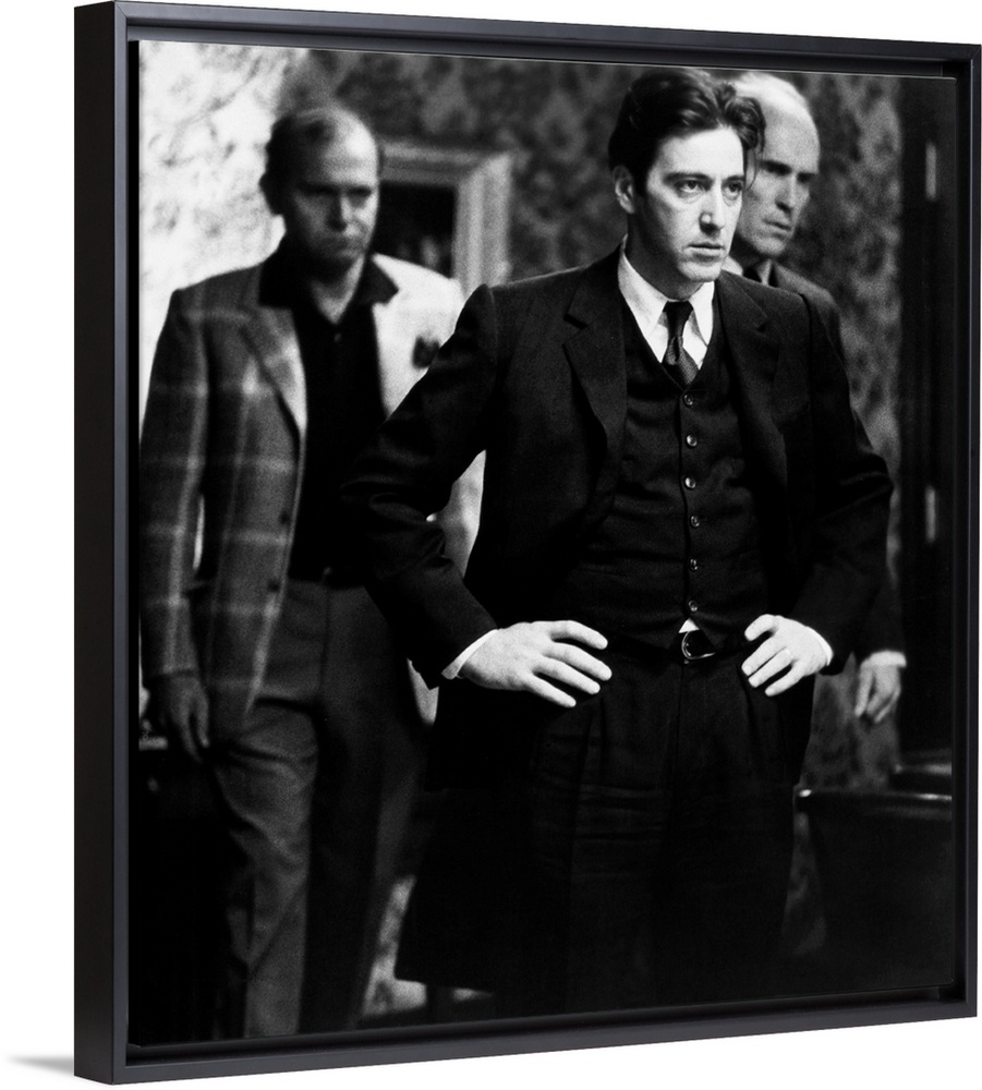 <p>THE GODFATHER: PART II, Al Pacino (front), Robert Duvall (right), 1974.</p>