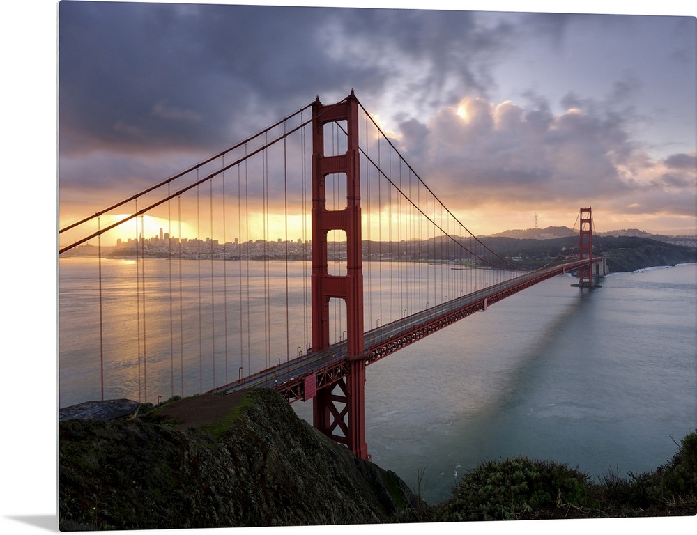 <p>The Golden Gate Bridge in San Francisco at sunrise.</p>