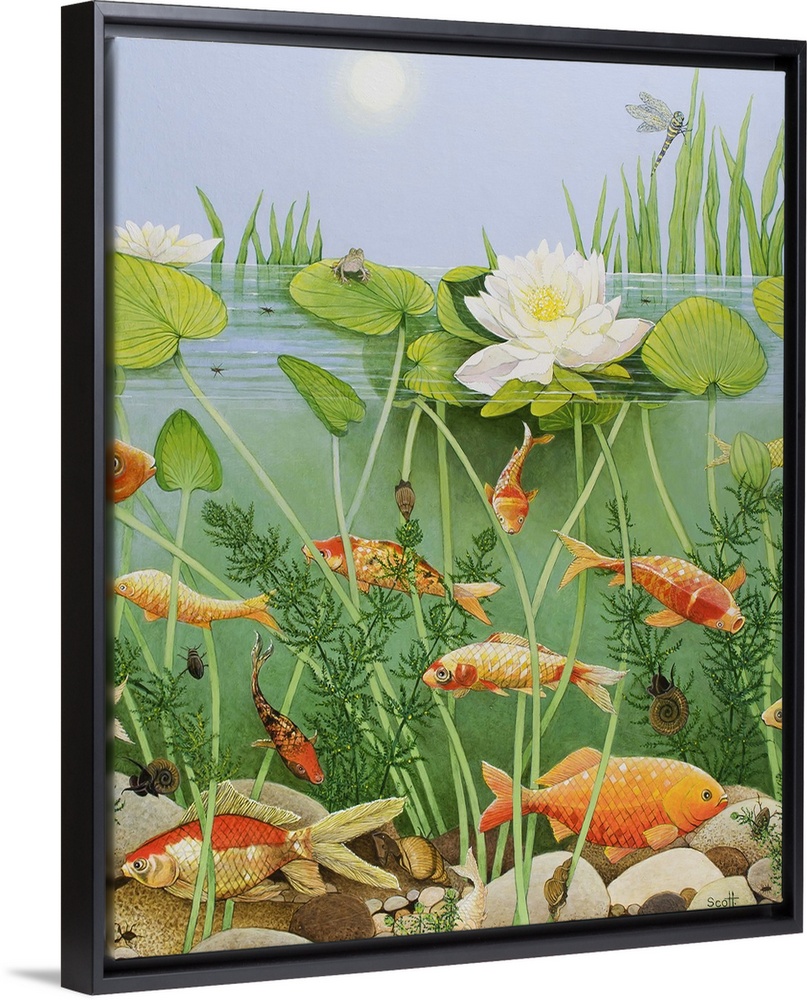 Art Contemporary Art Plants and Flowers Wildlife Lily Water Lily Painting Pat Scott Fish