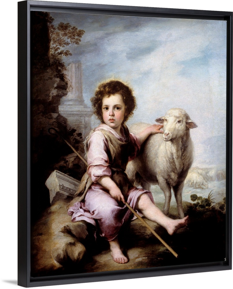 <p>The Good Shepherd. Painting by Bartolome Esteban Murillo (1618-1682) 17th century. 1,23 x 1,01 m. Prado Museum, Madrid</p>