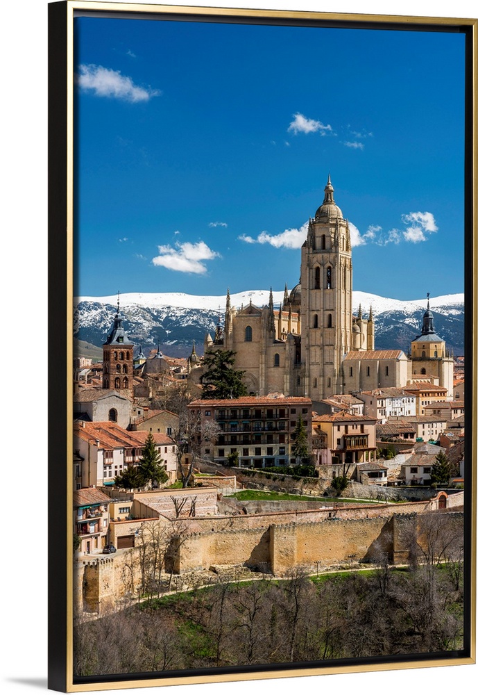 <p>City Skyline With The Gothic Cathedral And The Snowy Mountains Of Sierra De Guadarrama In The Background, Segovia, Castile And Leon, Spain</p>