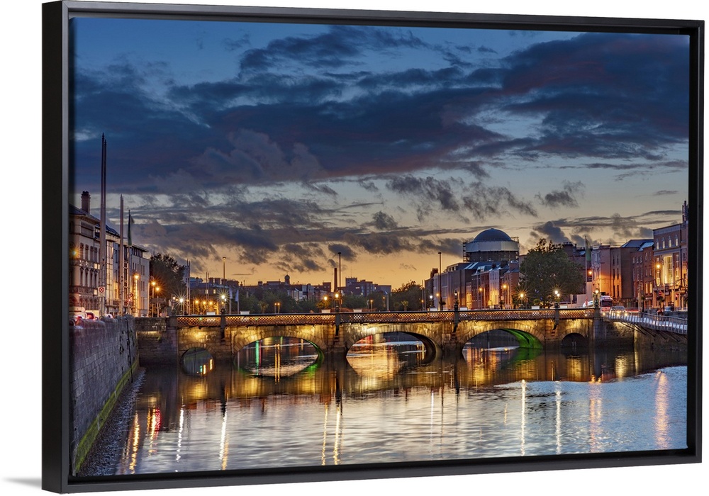 <p>The Grattan bridge over the river Liffey at dusk in downtown Dublin, Ireland.</p>