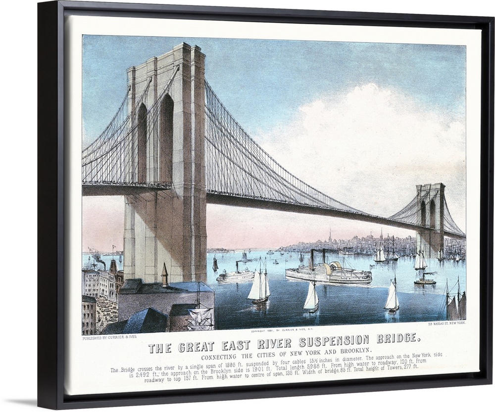 <p>The Great East River Suspension Bridge Connecting the Cities of New York and Brooklyn, 1881 (originally hand-coloured lithograph) by Currier, N. (1813-88) and Ives, J.M. (1824-95)</p>