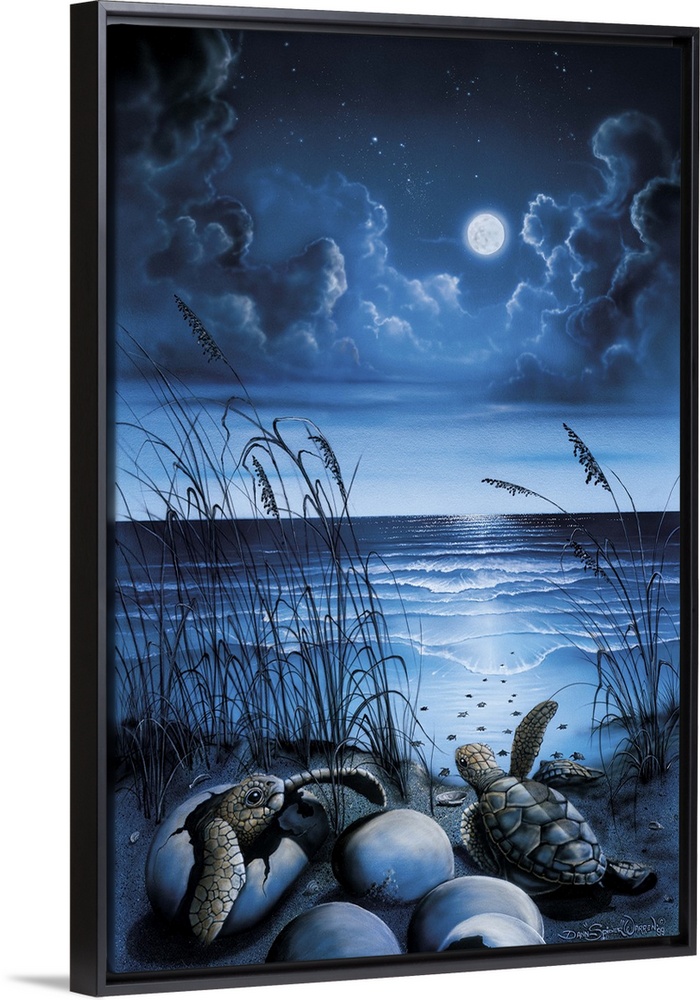 <p>Night over the ocean with turtles hatching.</p>