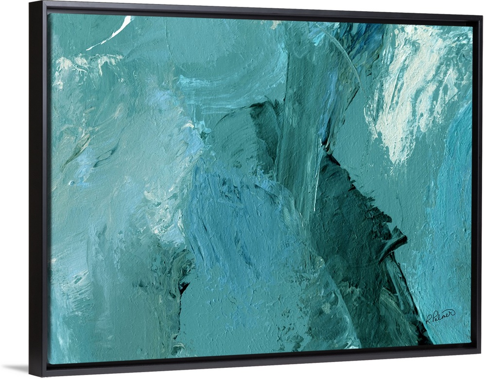 <p>Abstract painting with layers of teal and hints of white.</p>