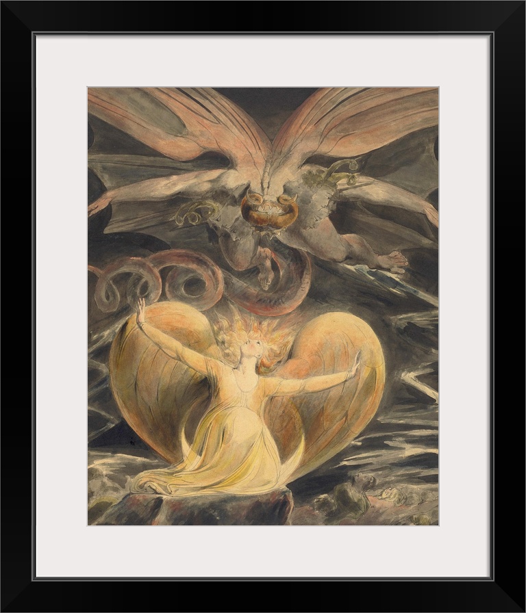 <p>The Great Red Dragon and the Woman Clothed with the Sun, by William Blake, 1805, British painting, pen and ink with watercolor over graphite (BSLOC_2016_6_239)</p>