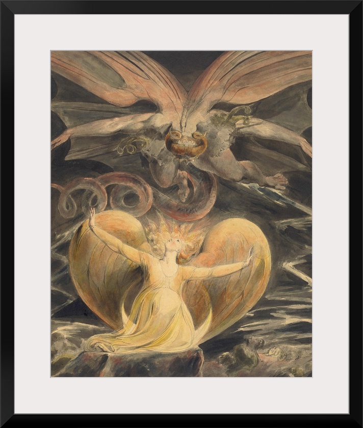 <p>The Great Red Dragon and the Woman Clothed with the Sun, by William Blake, 1805, British painting, pen and ink with watercolor over graphite (BSLOC_2016_6_239)</p>