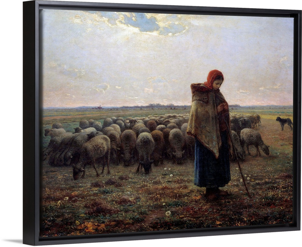 <p>Shepherdess with her flock called the great shepherdess. Painting by Jean Francois Millet (1814-1875), 1864. Oil on canvas. 0,81 x 1,01 m. Orsay Museum, Paris</p>