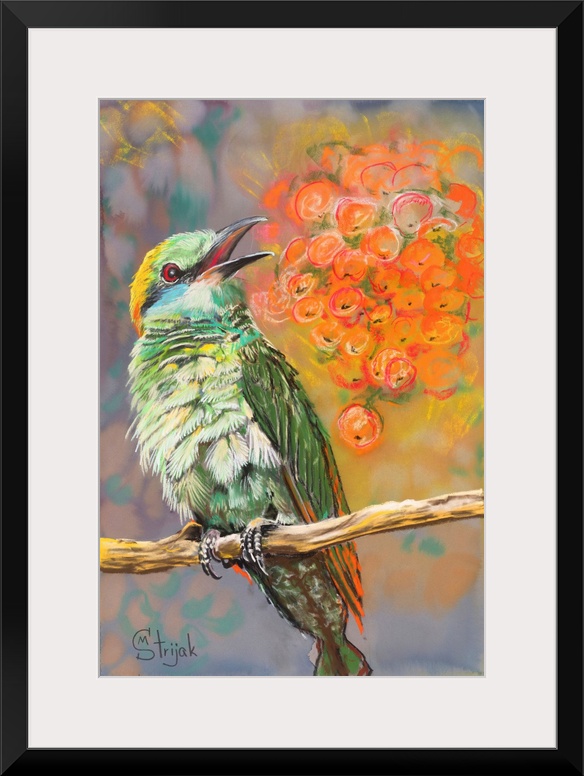 Art Contemporary Art Wildlife Drawing Florals Orange Wall Art Marina Strijakova Wildlife Bird