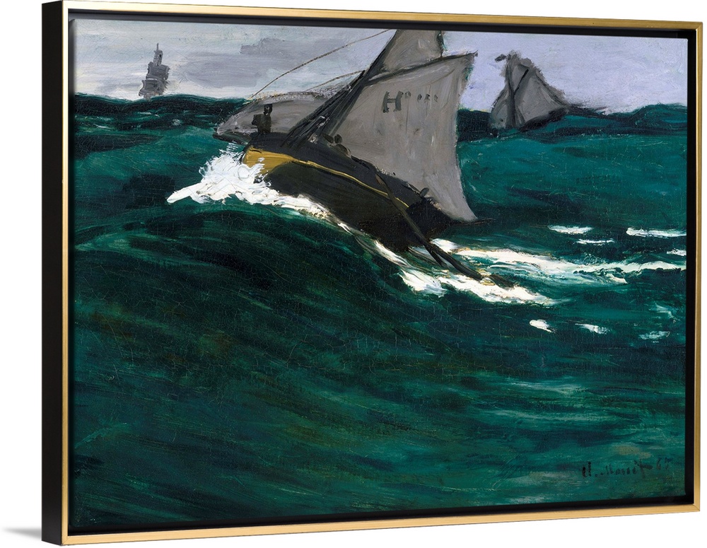 Art Classic Art Classic Art by Period Impressionism Classic Art by Subject Rivers, Lakes and Oceans Green Wall Art Seascapes Claude Monet Painting Boat