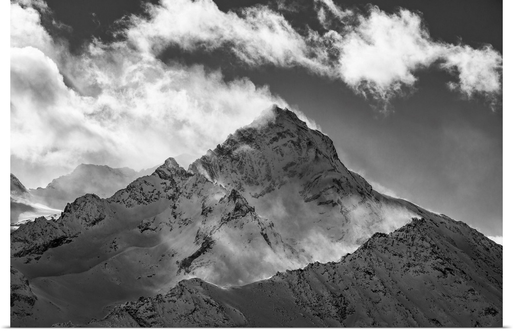 <p>The Grivola Peak during a windy day from the Couis peak, near Pila locality (Gressan municipality, Aosta province, Aosta Valley, Italy, Europe). Valle d'Aosta, Western Europe, Italy.</p>