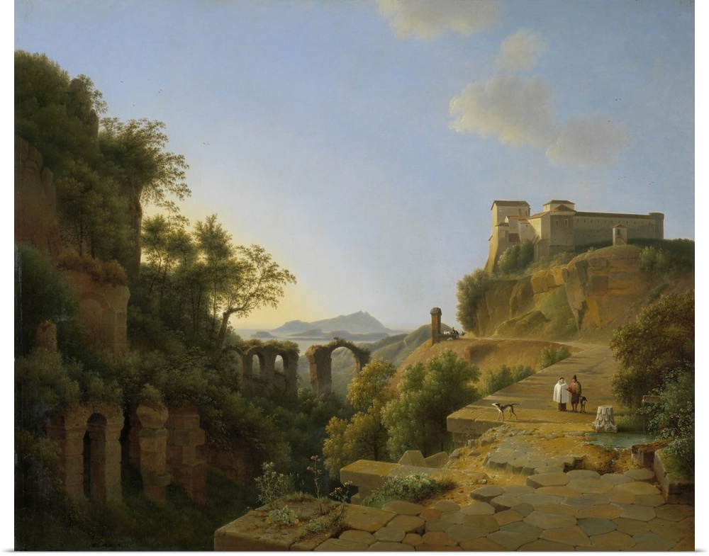 <p>The Gulf of Naples with the Island of Ischia in the Distance, by Josephus Augustus Knip, 1818, Dutch painting, oil on canvas. Picturesque view of the island of Ischia in Gulf of Naples from the site of Nero's aqueduct and the church of SS Quattro Coronati. The Epomeo volcano is in the distance.</p>