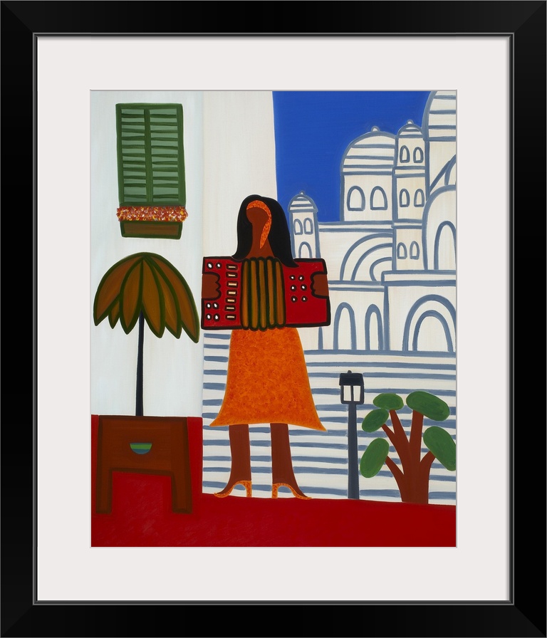 <p>Contemporary painting of a woman playing an accordion in Paris.</p>