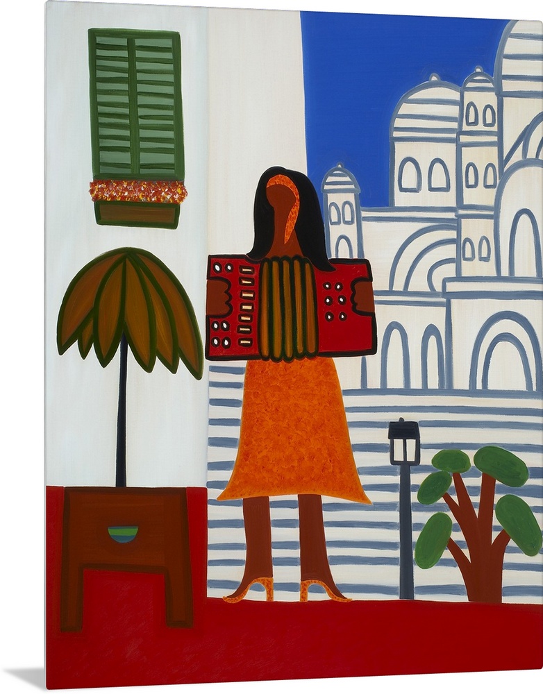 <p>Contemporary painting of a woman playing an accordion in Paris.</p>