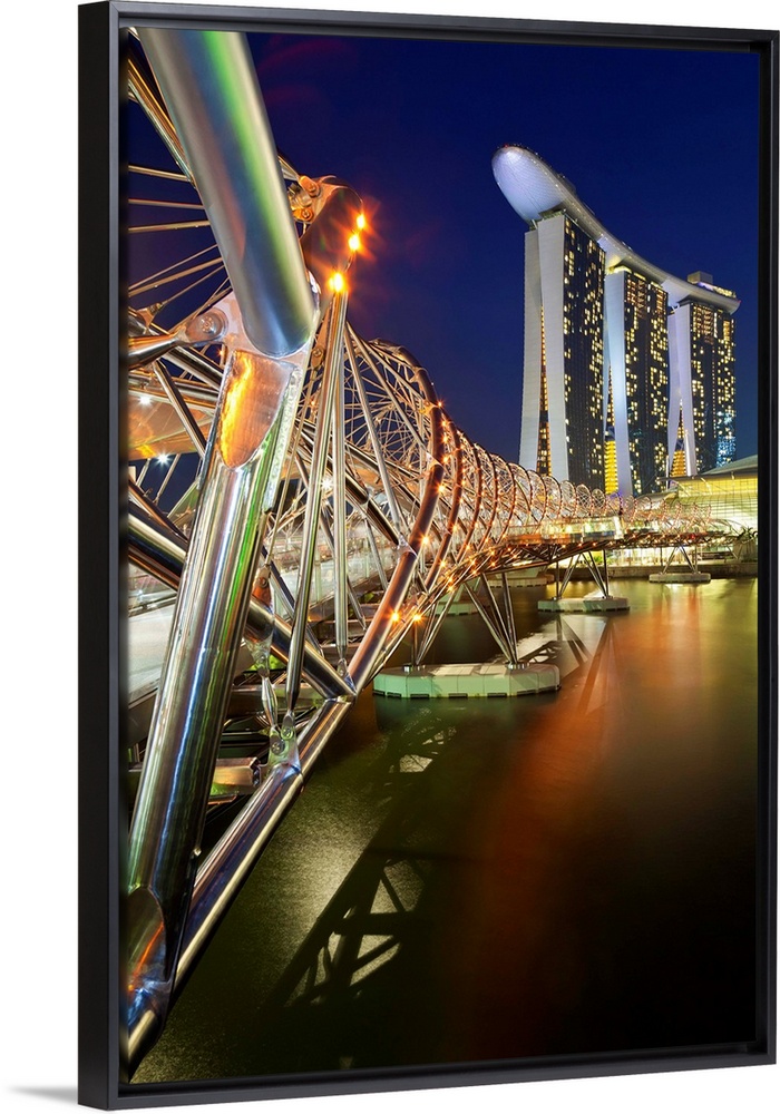<p>The Helix Bridge and Marina Bay Sands, Marina Bay, Singapore, South East Asia</p>