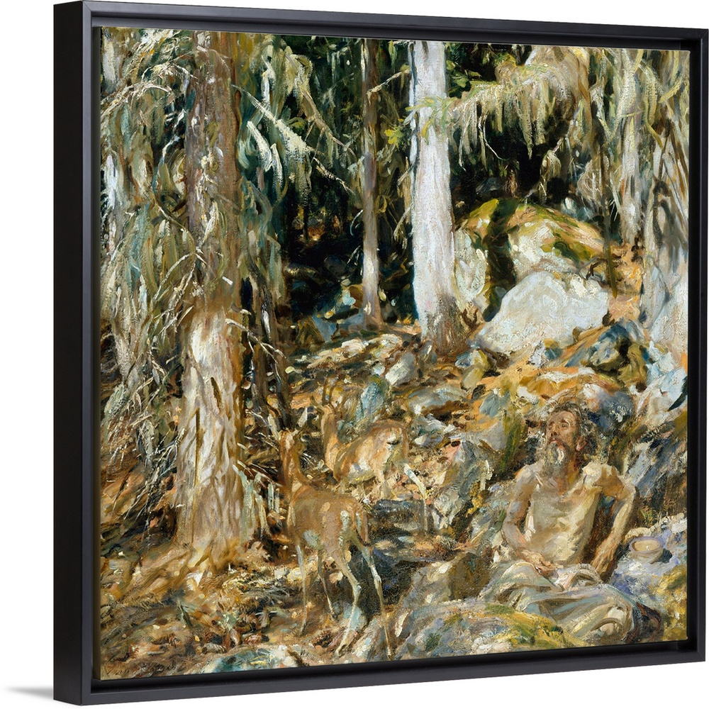 <p>Sargent based this painting on sketches he had made in Val d'Aosta, in the foothills of the Alps, in northwestern Italy. Although he seems to have been preoccupied with rendering the sundappled landscape in textured brushstrokes, he also included two deer (contrived from a stuffed specimen) and a male figure that evokes religious personages such as Saint Jerome. Yet, when approving The Hermit as the translated title of the picture, Sargent wrote to the director of the Metropolitan, I wish there were another simple word that did not bring with it any Christian association, and that rather suggested quietness and pantheism.</p>