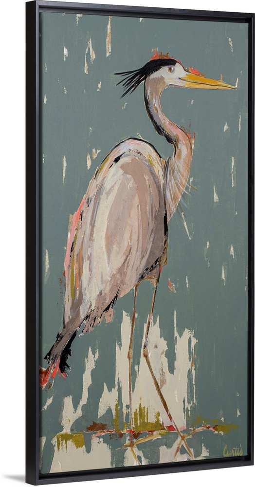 Art Coastal Blue Wall Art Contemporary Art Painting Wildlife Bird Heron and Egret
