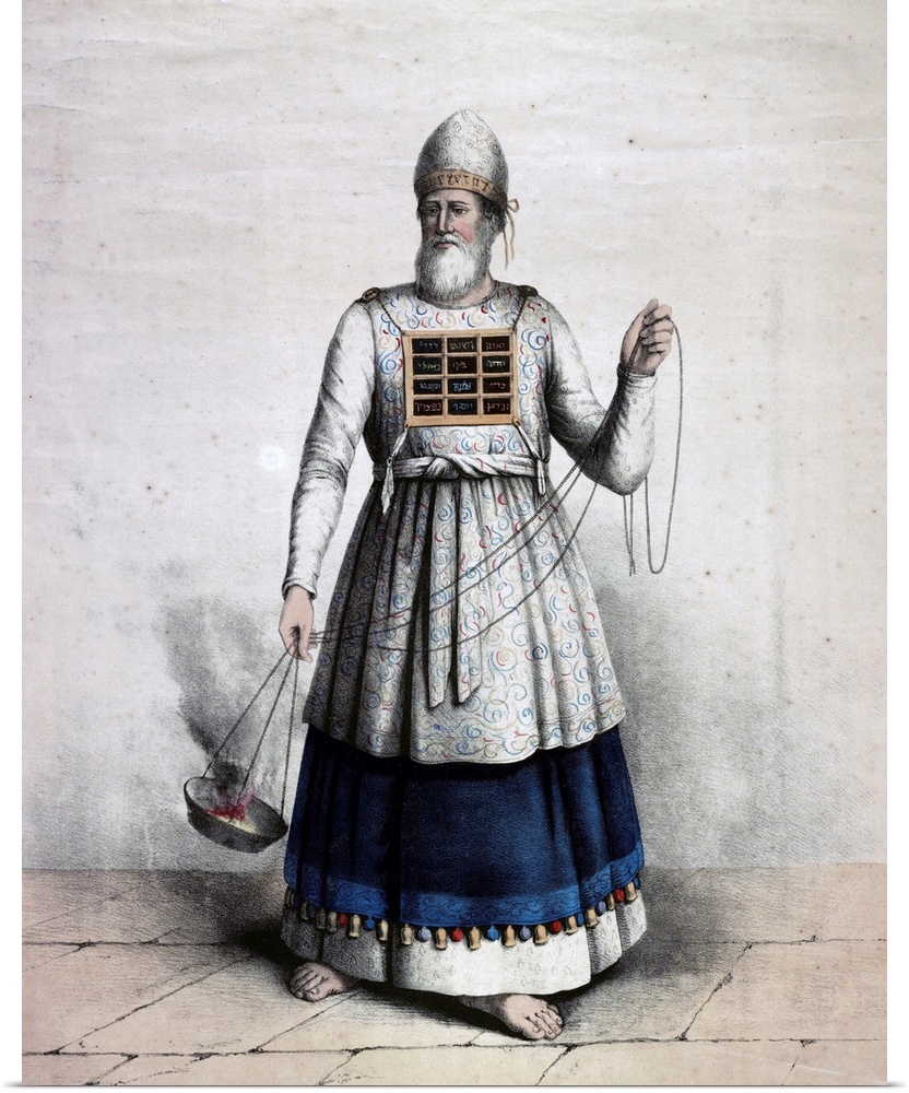 <p>The high priest in his robes by John Henry Camp. Lithograph, handcoloured print of a priest, full-length portrait, standing, wearing robes, holding a censer with burning incense.</p>