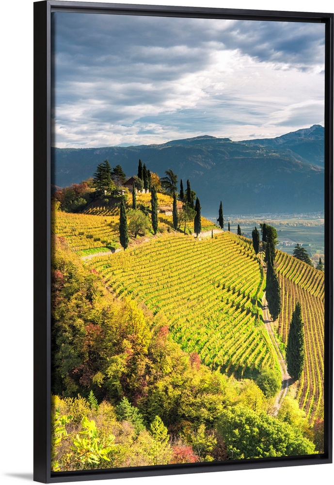 <p>Termeno/Tramin, Province Of Bolzano, South Tyrol, Italy, Europe. The Hill Of Kastelaz With His Vineyards</p>