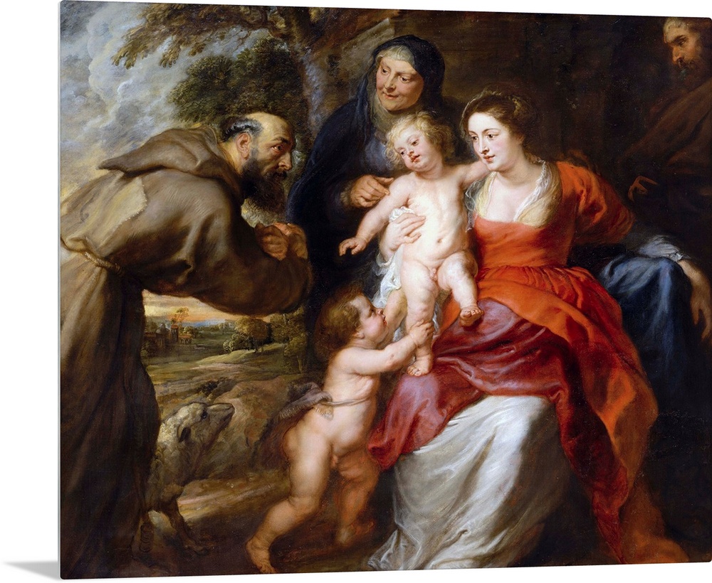 <p>An ecstatic Saint Francis adores the infant Christ, who appears in this warm-hearted vision with the Virgin Mary, her mother Saint Anne, a subdued Saint Joseph, and a playful young Saint John the Baptist. Rubens made a number of modifications in the course of work, intensifying the friar's impetuous movement and revising the Virgin's pose from a formal profile to a casual expansiveness. Two other versions are in the Royal Collection and the San Diego Museum of Art. American taste was slow to embrace the exuberant emotionalism of Rubens; this is the first of his works to enter an American public collection.</p>