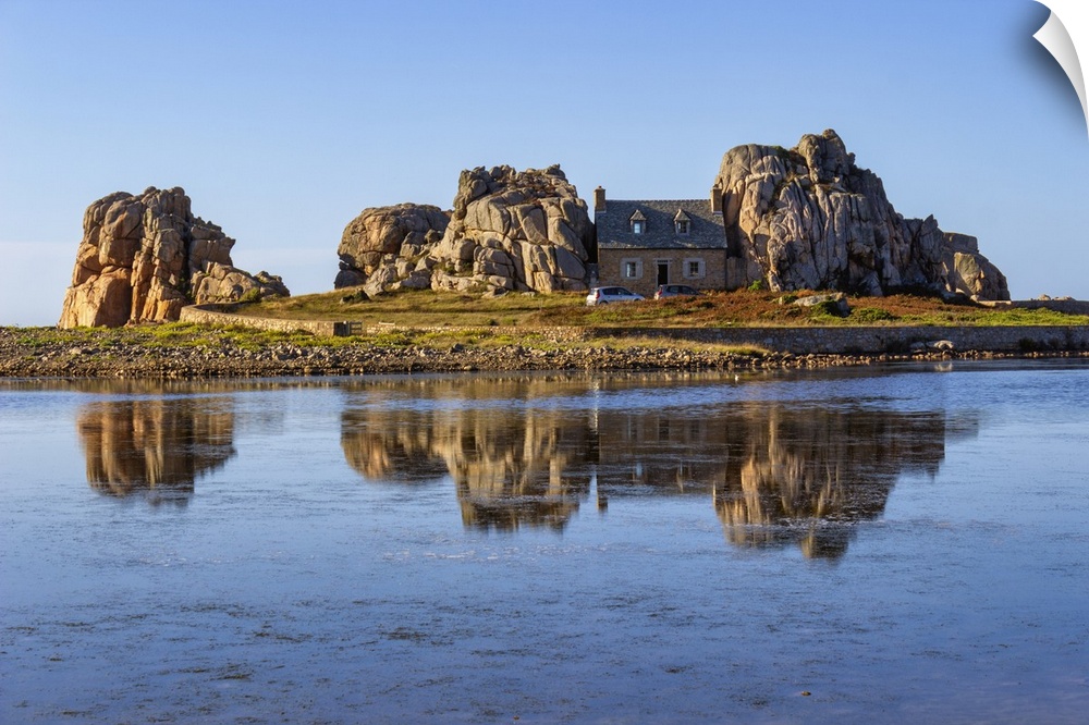 <p>The house between the rocks, Le Gouffre, Plougrescant, Cotes-d'Armor, Brittany, France, Europe</p>
