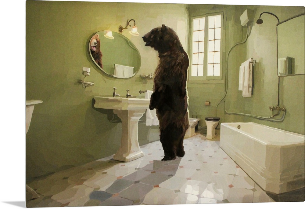 Art Eclectic Contemporary Art Green Wall Art Painting Surrealism Keith Thomson Wildlife Bear
