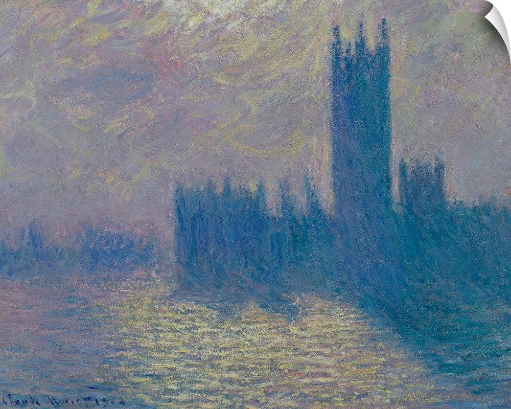 Art Blue Wall Art Classic Art Modern Art Impressionism Rivers, Lakes and Oceans Seascapes Claude Monet Painting London Houses of Parliament
