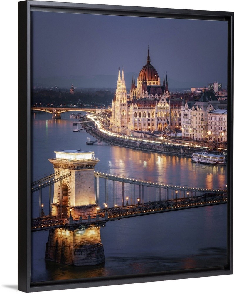 <p>The Hungarian Parliament on the River Danube with the Chain Bridge, UNESCO World Heritage Site, Budapest, Hungary, Europe</p>