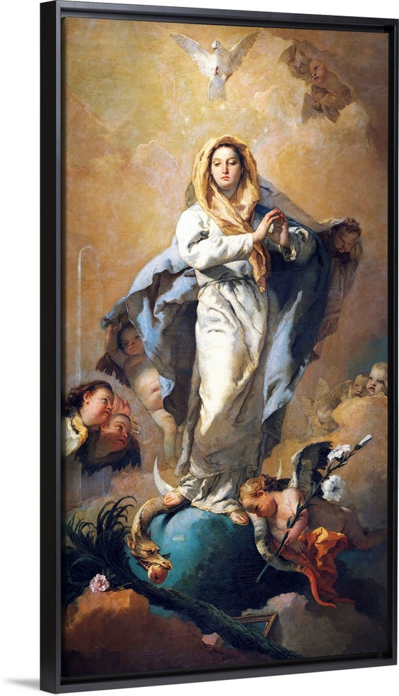 <p>TIEPOLO, Giovanni Battista (1696-1770). The Immaculate Conception. 1767 - 1769. The Immaculate with Marian symbols, angels and the Holy Spirit. Baroque art. Oil on canvas. SPAIN. Madrid. Prado Museum. -</p>