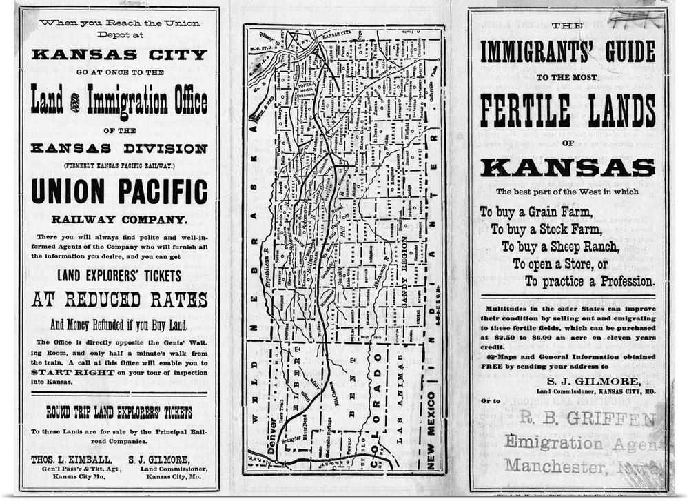 <p>Circa 1880 pamphlet encouraging westward immigration to Kansas includes a map of the state.</p>