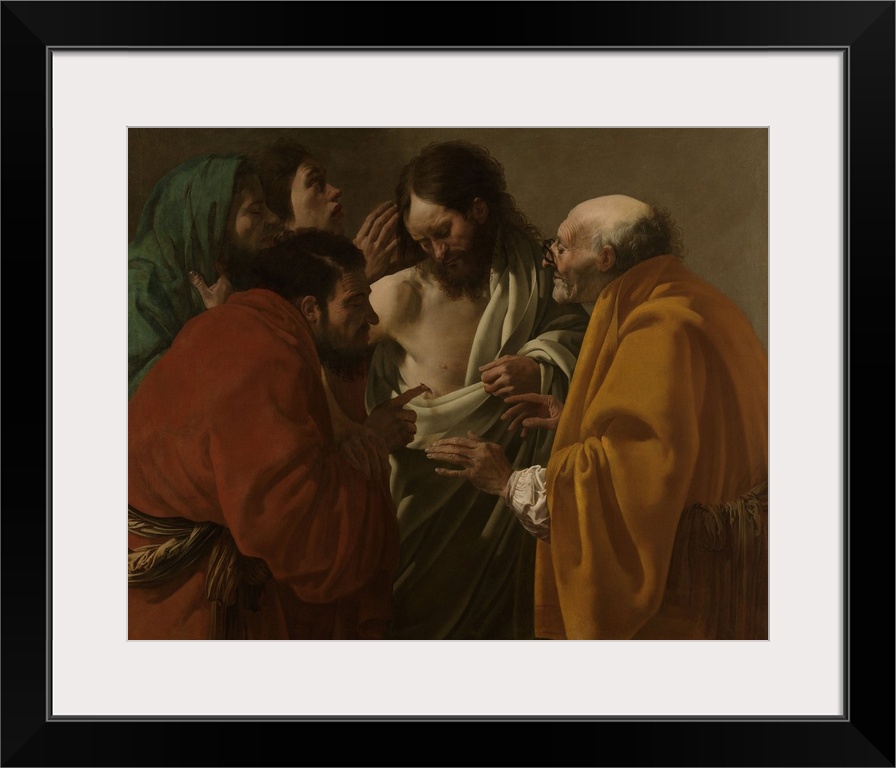 <p>The Incredulity of Thomas, by Hendrick ter Brugghen, 1522, Dutch painting, oil on canvas. Thomas, one of Twelve Disciples, doubted Jesus' resurrection, until he saw and felt Jesus' wounded body. Influenced by Caravaggio, Ter Brugghen portrayed Christ and</p>