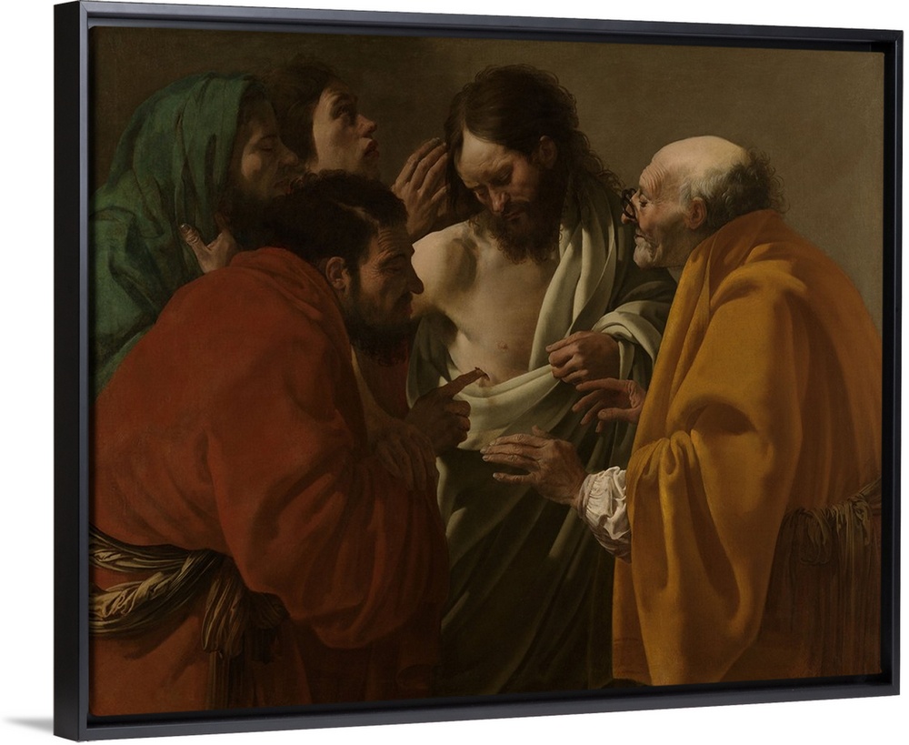 <p>The Incredulity of Thomas, by Hendrick ter Brugghen, 1522, Dutch painting, oil on canvas. Thomas, one of Twelve Disciples, doubted Jesus' resurrection, until he saw and felt Jesus' wounded body. Influenced by Caravaggio, Ter Brugghen portrayed Christ and</p>