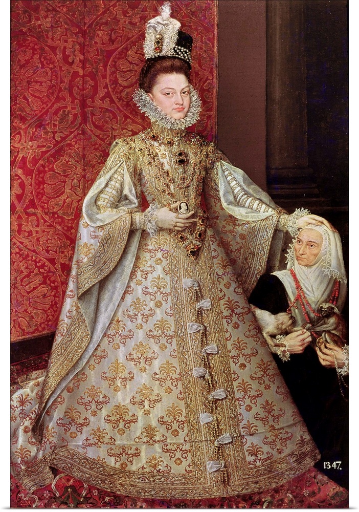 <p>XIR228540 The Infanta Isabel Clara Eugenia (1566-1633) with the Dwarf, Magdalena Ruiz, c.1580 (oil on canvas) by Sanchez Coello, Alonso (1531-89) (after); 207x129 cm; Prado, Madrid, Spain; (add. info.: daughter of Philip II and Elisabeth of France; married Archduke Albert of Austria; she and her husband were made joint governors of the Spanish Netherlands in 1598); Giraudon; Spanish, out of copyright</p>