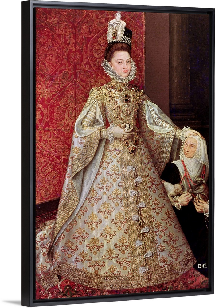 <p>XIR228540 The Infanta Isabel Clara Eugenia (1566-1633) with the Dwarf, Magdalena Ruiz, c.1580 (oil on canvas) by Sanchez Coello, Alonso (1531-89) (after); 207x129 cm; Prado, Madrid, Spain; (add. info.: daughter of Philip II and Elisabeth of France; married Archduke Albert of Austria; she and her husband were made joint governors of the Spanish Netherlands in 1598); Giraudon; Spanish, out of copyright</p>