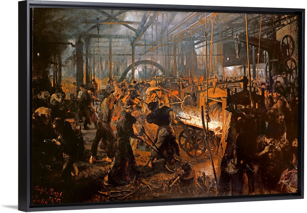 <p>XPH330300 The Iron-Rolling Mill (oil on canvas), 1875; by Menzel, Adolph Friedrich Erdmann von (1815-1905); Neue Nationalgalerie, Berlin, Germany; German, out of copyright</p>