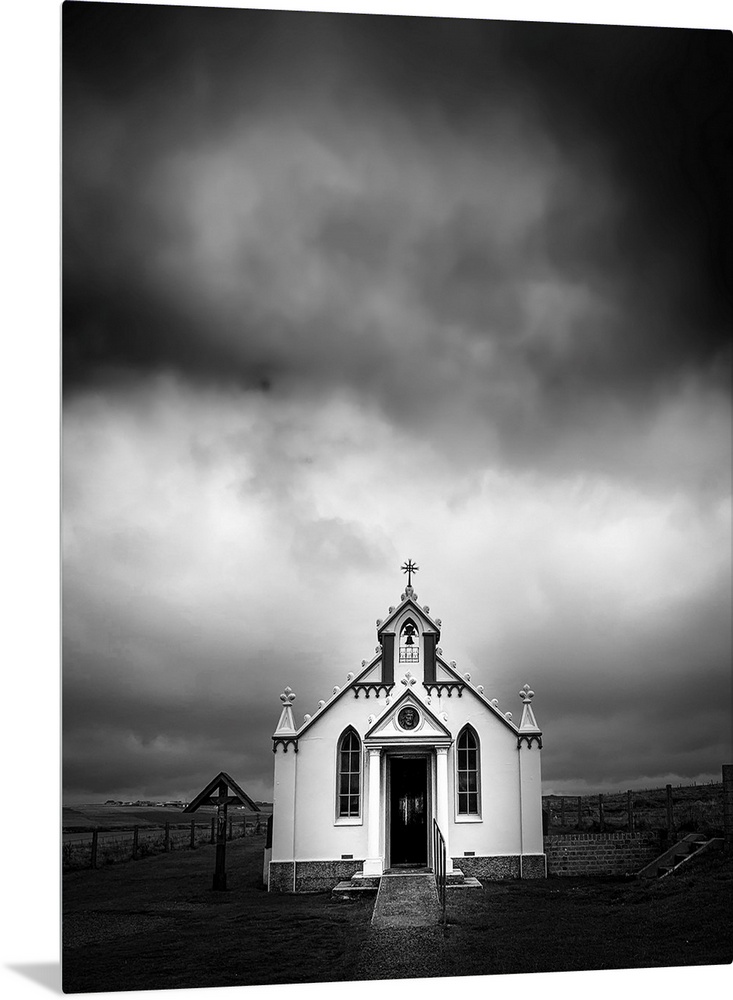 <p>Dramatic black and white fine art photography of The Italian Chapel on Orkney Island in Scotland.</p>