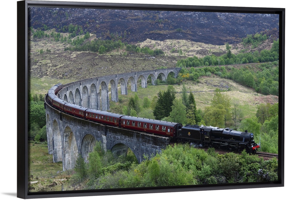 <p>The Jacobite Express crossing Glenfinnan Viaduct, Mallaig, Highlands, Scotland, United Kingdom, Europe</p>