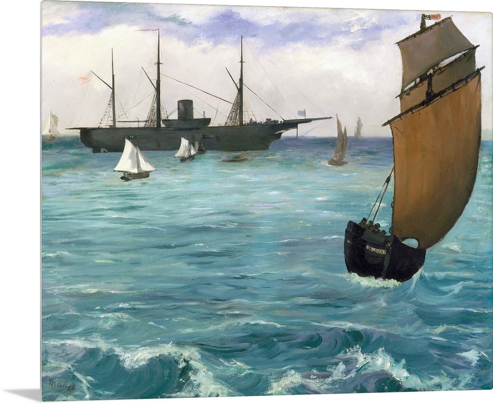 Art Blue Wall Art Classic Art Modern Art Impressionism Classic Art by Subject Rivers, Lakes and Oceans Edouard Manet Painting Transportation Boat Ship