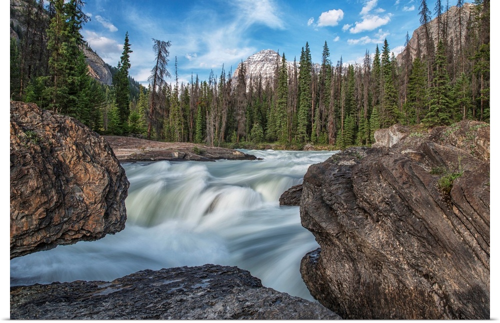 <p>The Kicking Horse River flows over a waterfall before it goes beneath a natural bridge, Yoho National Park, Canada.</p>