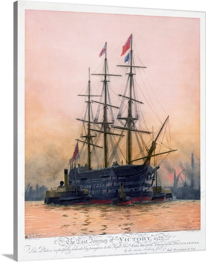 <p>The Last Journey of HMS Victory,' 1922 by Harold Wyllie, 1923, published in London by Robert Dunthorne, color lithograph.</p>