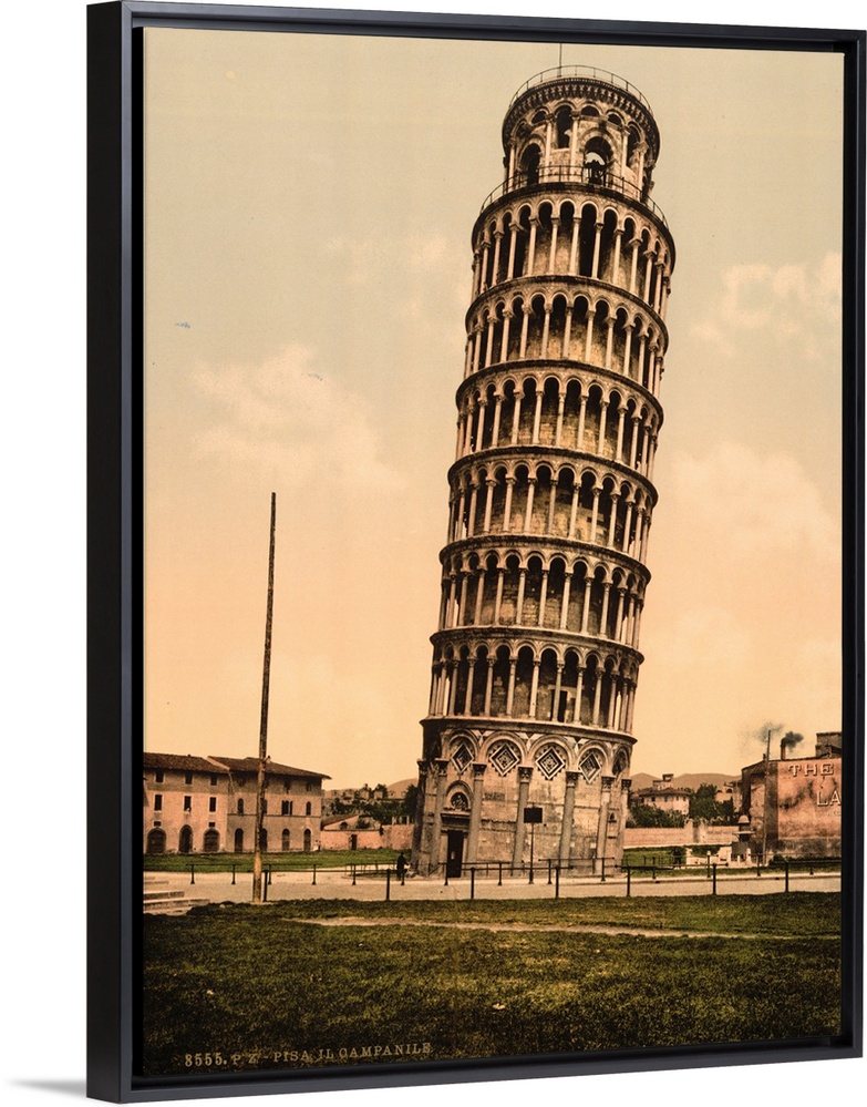 <p>Hand colored photograph of the leaning tower, Pisa, Italy.</p>
