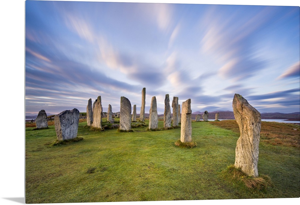 <p>The Lewisian gneiss stone circle at Callanish on an early autumnal morning with clouds forming above, Isle of Lewis, Outer Hebrides, Scotland, United Kingdom, Europe</p>
