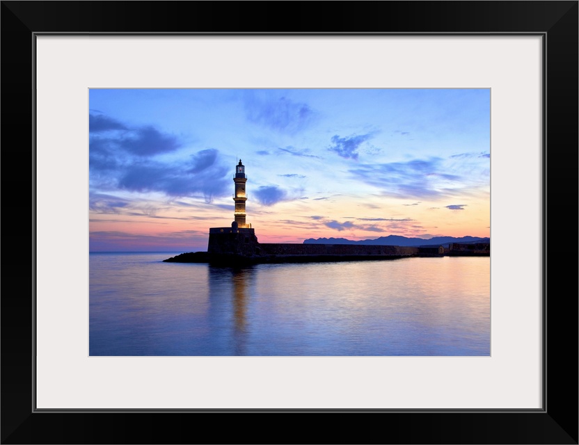 <p>The Light House in The Venetian Harbour at Sunrise, Chania, Crete, Greek Islands, Greece, Europe</p>