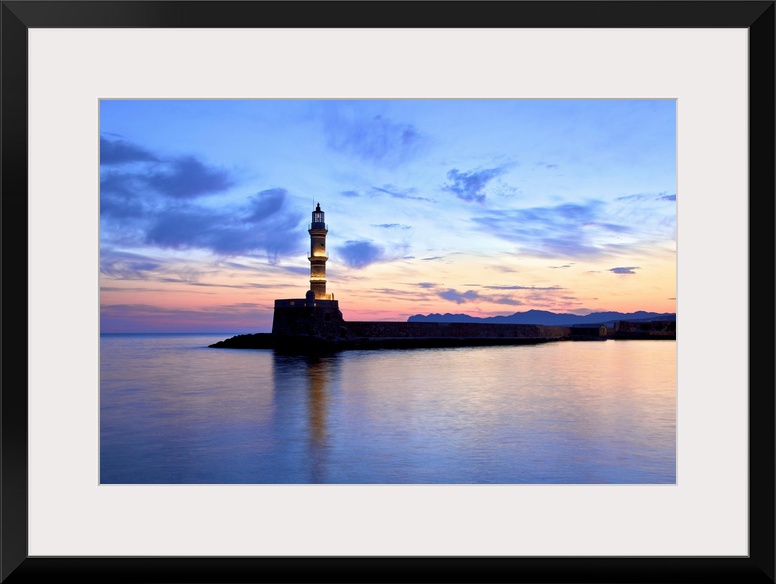 <p>The Light House in The Venetian Harbour at Sunrise, Chania, Crete, Greek Islands, Greece, Europe</p>