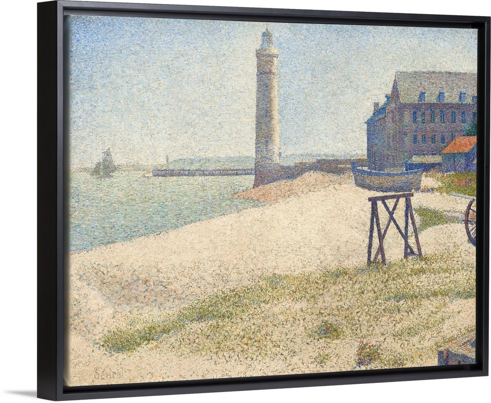 <p>The Lighthouse at Honfleur, by Georges Seurat, 1886, French Post-Impressionist painting, oil on canvas. This is painted in the technique Seurat called 'divisionism' or 'neoimpressionism.' He juxtaposed tiny, discrete touches of pure color that were meant</p>