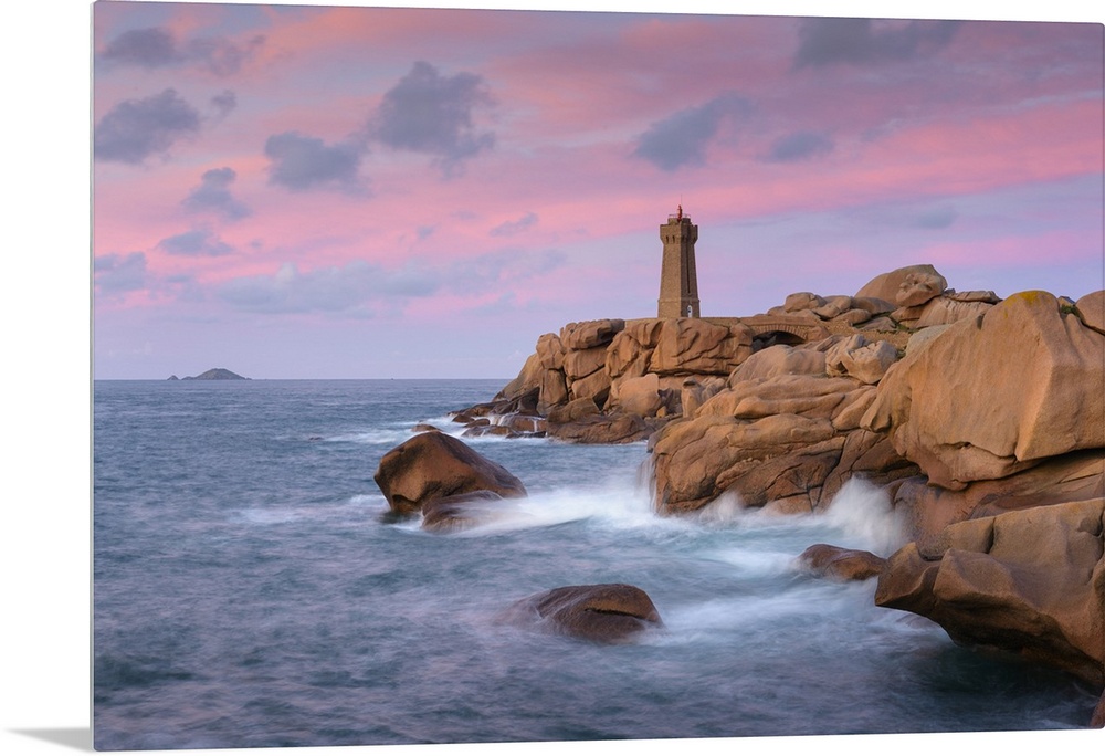 <p>The lighthouse of Ploumanac'h (Men Ruz) at rocky coast, Pointe du Squewel, Cote de Granit Rose, Ploumanach, Brittany, France</p>