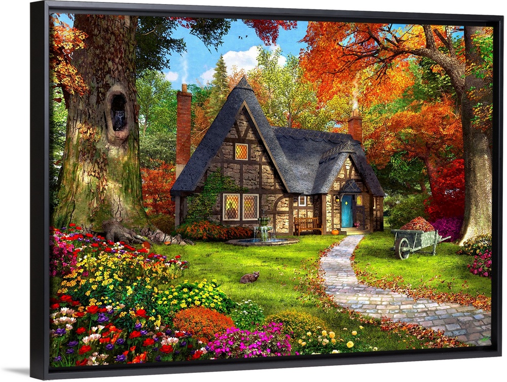 <p>Illustration of a small cozy cottage in a Autumnal woodland.</p>