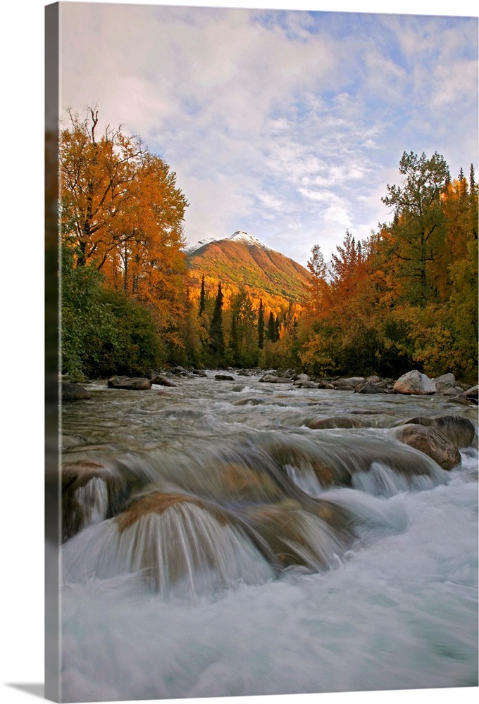 <p>The Little Susitna River at the start of the Hatchers Pass Road in Autumn. Long exposure streaked water. Talkeetna mountains.</p>