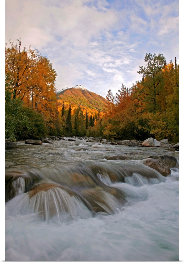 <p>The Little Susitna River at the start of the Hatchers Pass Road in Autumn. Long exposure streaked water. Talkeetna mountains.</p>
